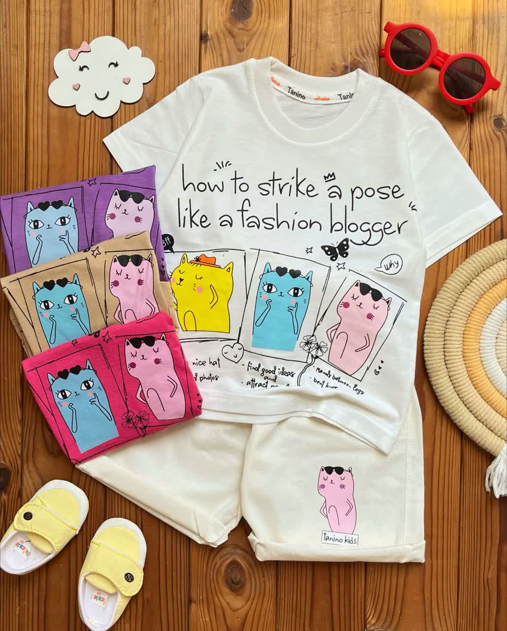 ست تیشرت با شلوارک کتان سه گربه