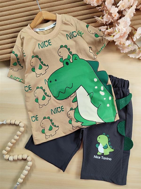 ناموجودست تیشرت و شلوارک دایناسور و پسر