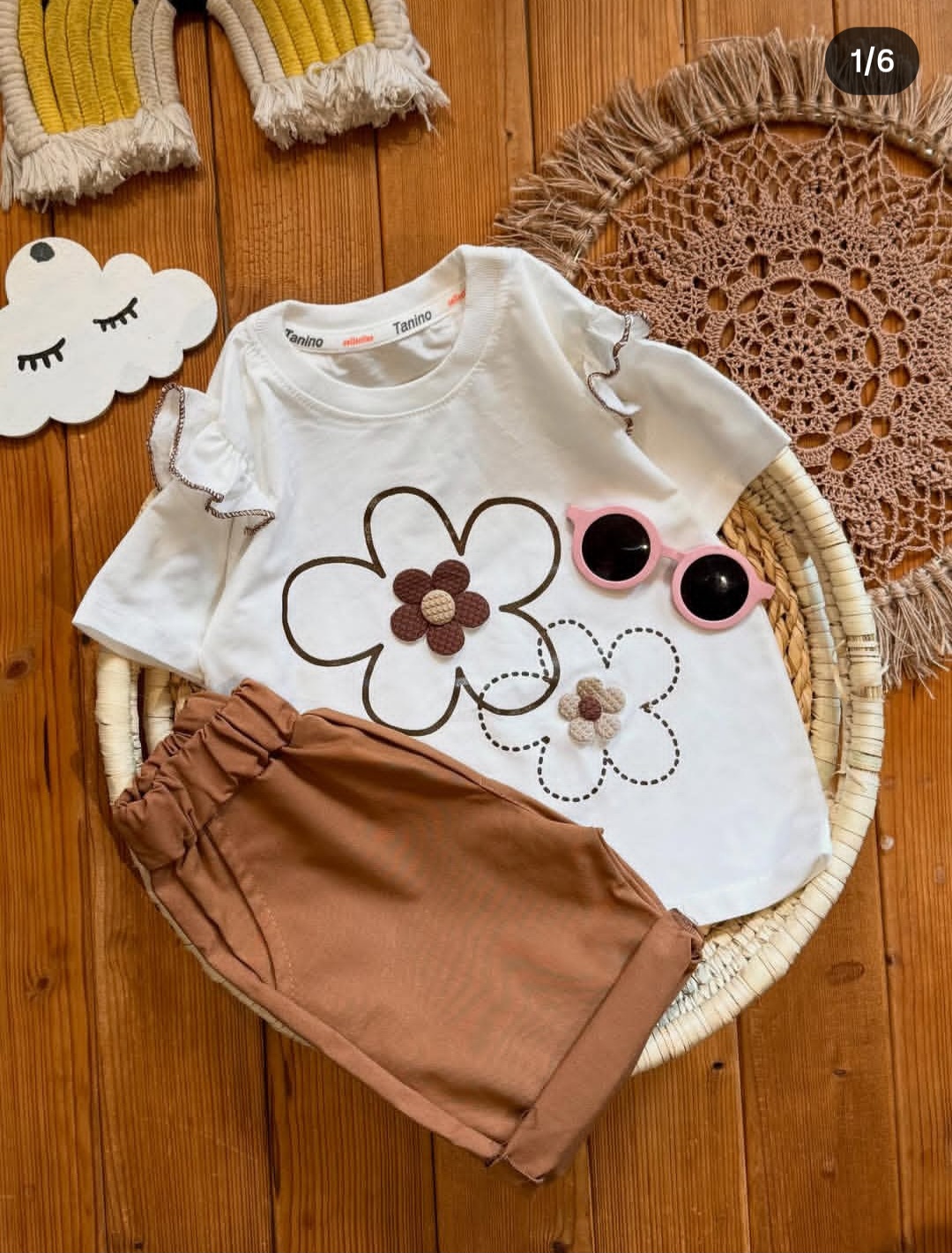 ناموجودست تیشرت و شلوارک گل سرشونه چین دار
