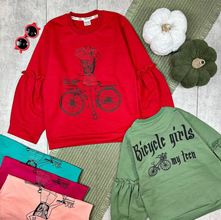 بلوز آستین پفی دختر دوچرخه سوار🚵♂